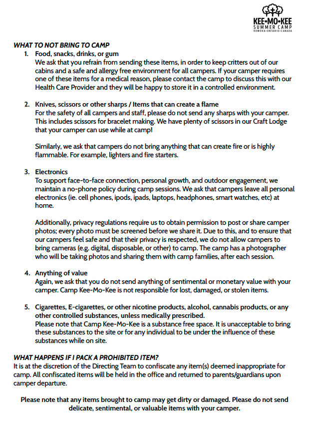 CLICK HERE TO DOWNLOAD A PDF PACKING LIST